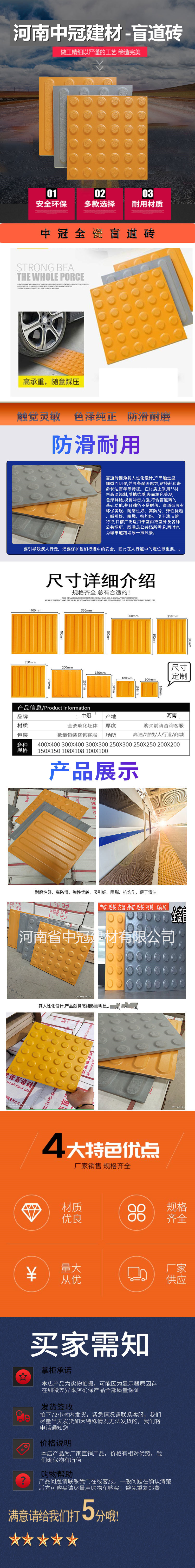 我們的盲道磚是全瓷的,不是塑膠的,也不是水泥,而且尺寸是經(jīng)過(guò)修邊的,不要害怕有誤差,厚度也達(dá)標(biāo)的,顏色是不會(huì)掉色脫色的,還有什么不放心的電話咨詢吧!18239167111\18839118777