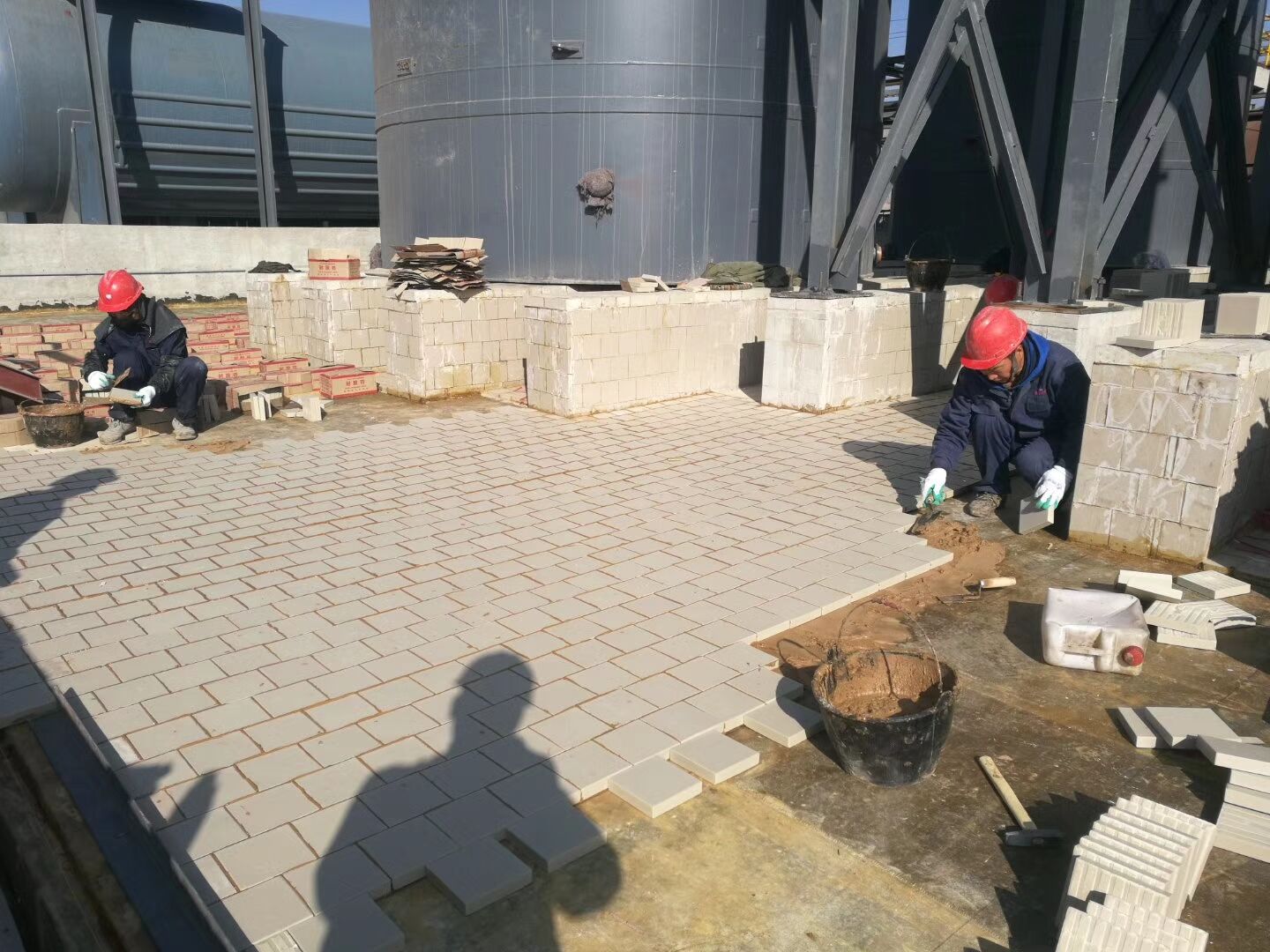 使用說明: 一般環氧樹脂,耐酸膠泥、耐酸水泥鋪貼,鋪貼時可根據上述生產廠家產品使用說明書進行施工; 用草酸清洗混凝土表面,達到酸堿中和; 工業瓷耐酸磚,間縫寬度約8—10mm,間縫深度與磚厚相平為宜,以防泄露; 鋪貼完畢后應用槽酸沖刷表面,以助于更加牢固。